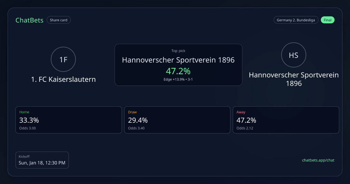 1. FC Kaiserslautern vs Hannoverscher Sportverein 1896 prediction card