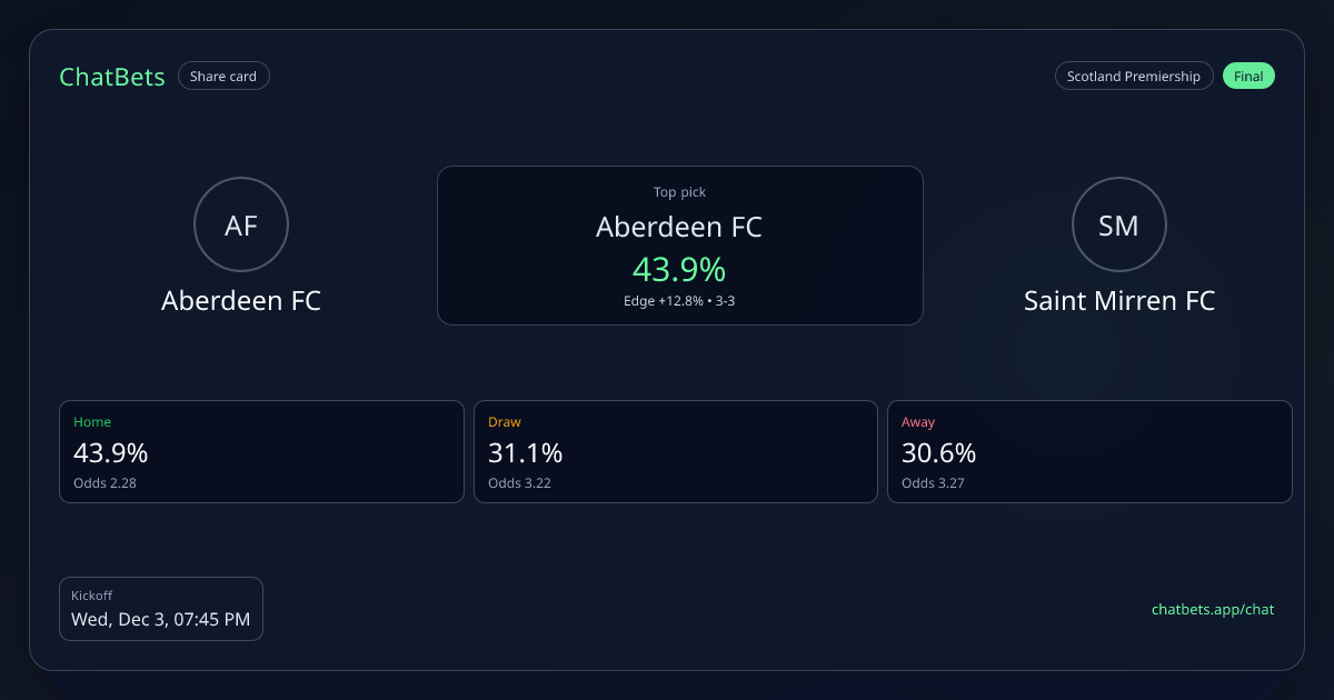 Aberdeen FC vs Saint Mirren FC prediction card
