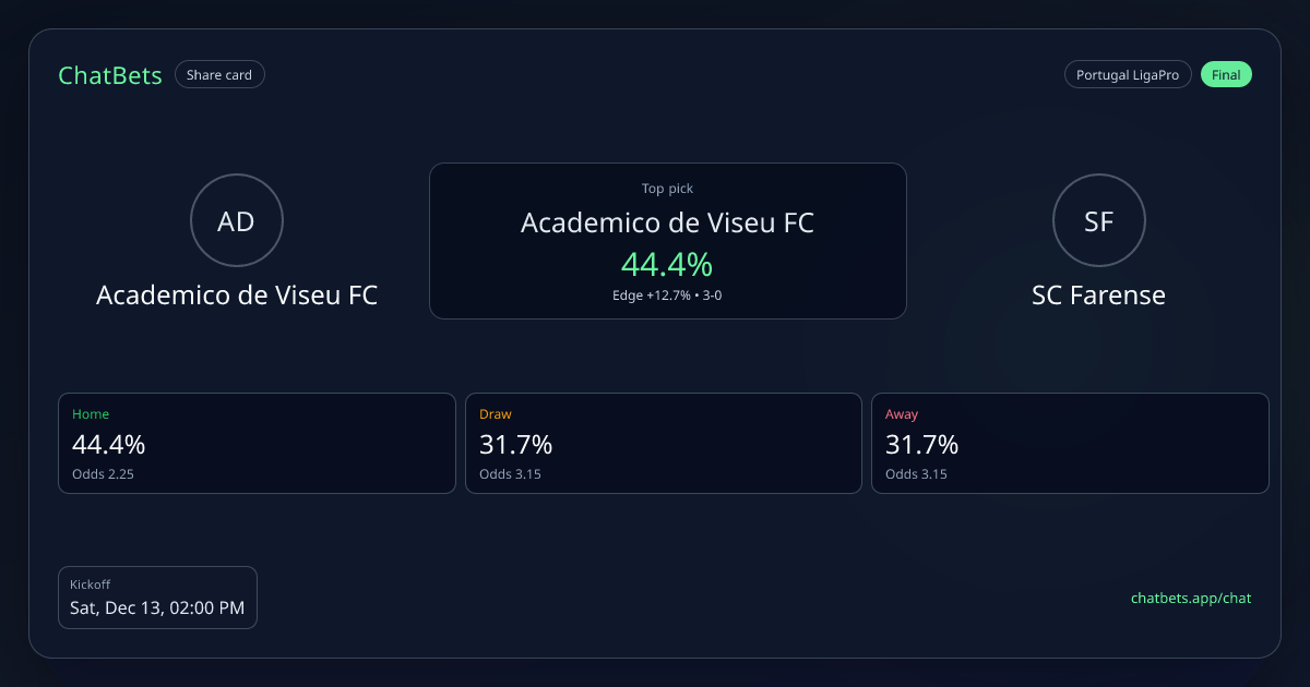 Academico de Viseu FC vs SC Farense prediction card