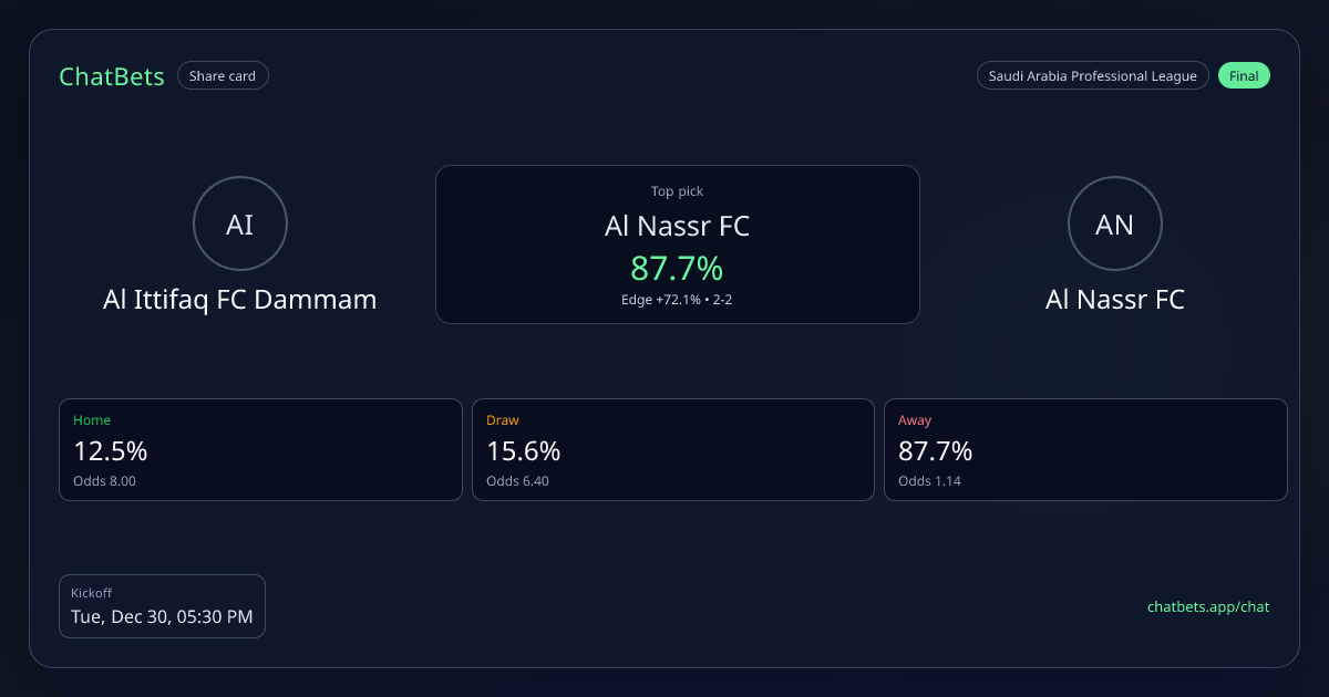 Al Ittifaq FC Dammam vs Al Nassr FC prediction card
