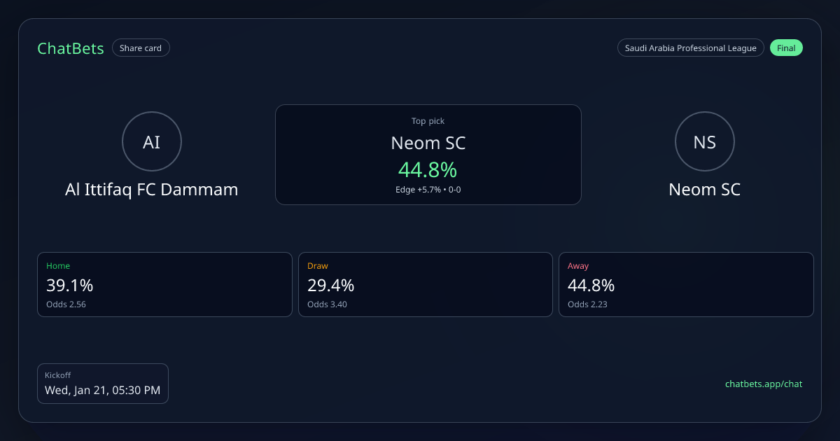 Al Ittifaq FC Dammam vs Neom SC prediction card