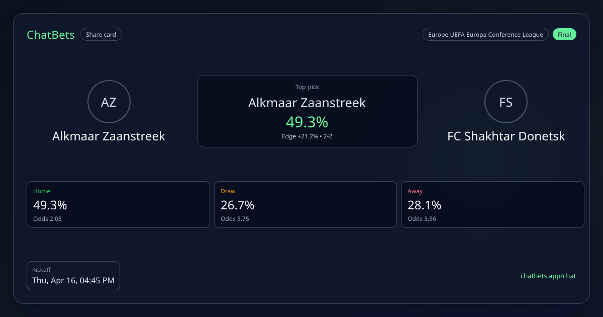 Alkmaar Zaanstreek vs FC Shakhtar Donetsk prediction card