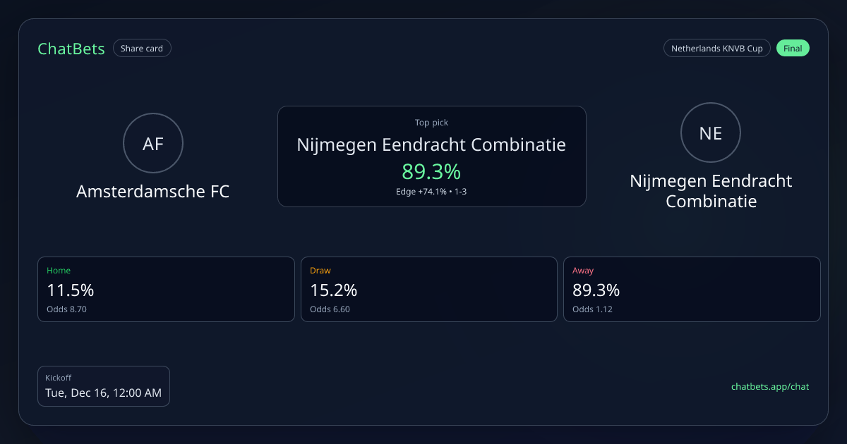 Amsterdamsche FC vs Nijmegen Eendracht Combinatie prediction card