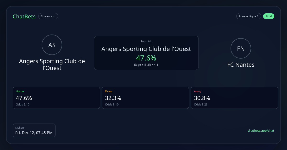 Angers Sporting Club de l'Ouest vs FC Nantes prediction card