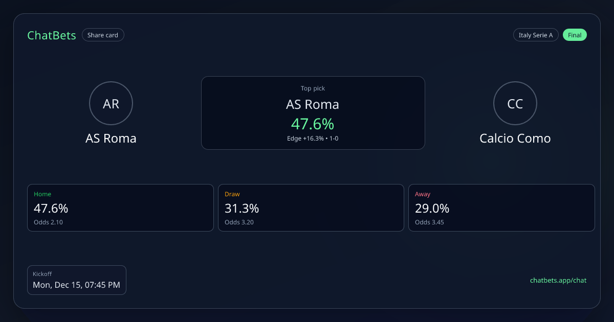 AS Roma vs Calcio Como prediction card