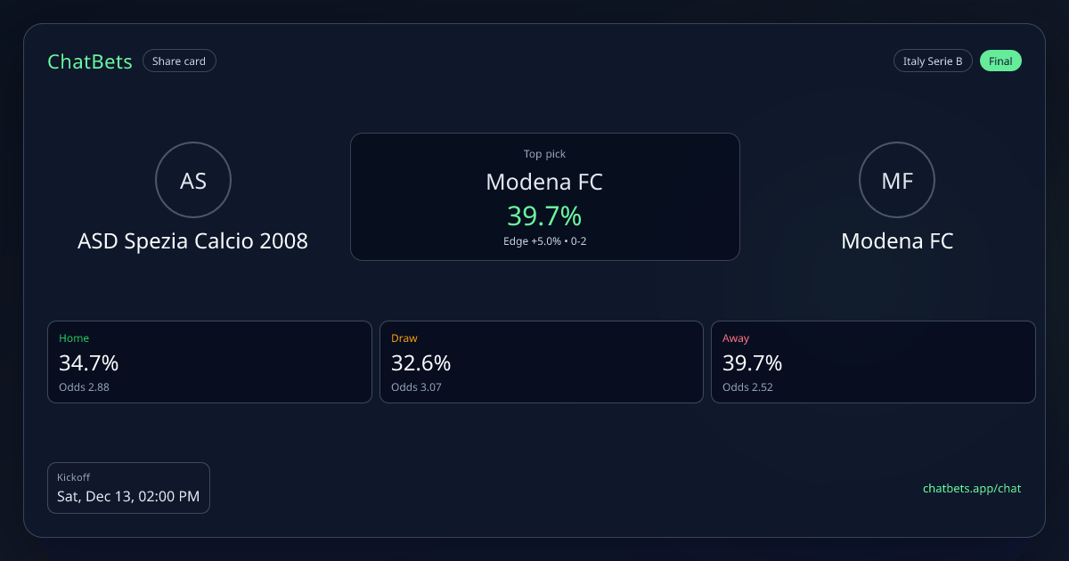 ASD Spezia Calcio 2008 vs Modena FC prediction card