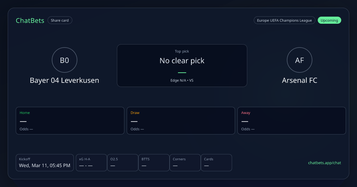 Bayer 04 Leverkusen vs Arsenal FC prediction card