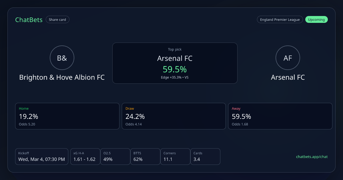 Brighton & Hove Albion FC vs Arsenal FC prediction card
