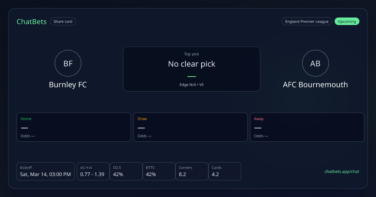 Burnley FC vs AFC Bournemouth prediction card