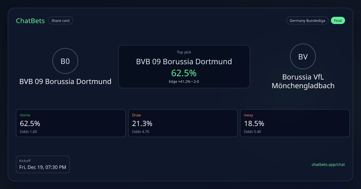BVB 09 Borussia Dortmund vs Borussia VfL Mönchengladbach prediction card
