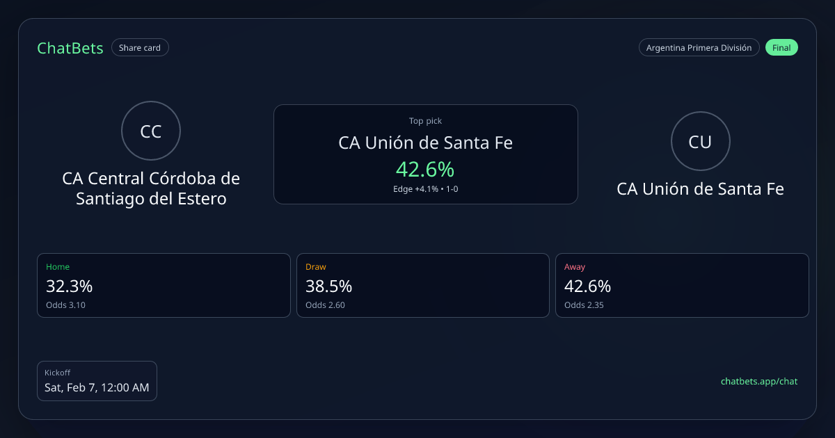 CA Central Córdoba de Santiago del Estero vs CA Unión de Santa Fe Prediction Card | ChatBets