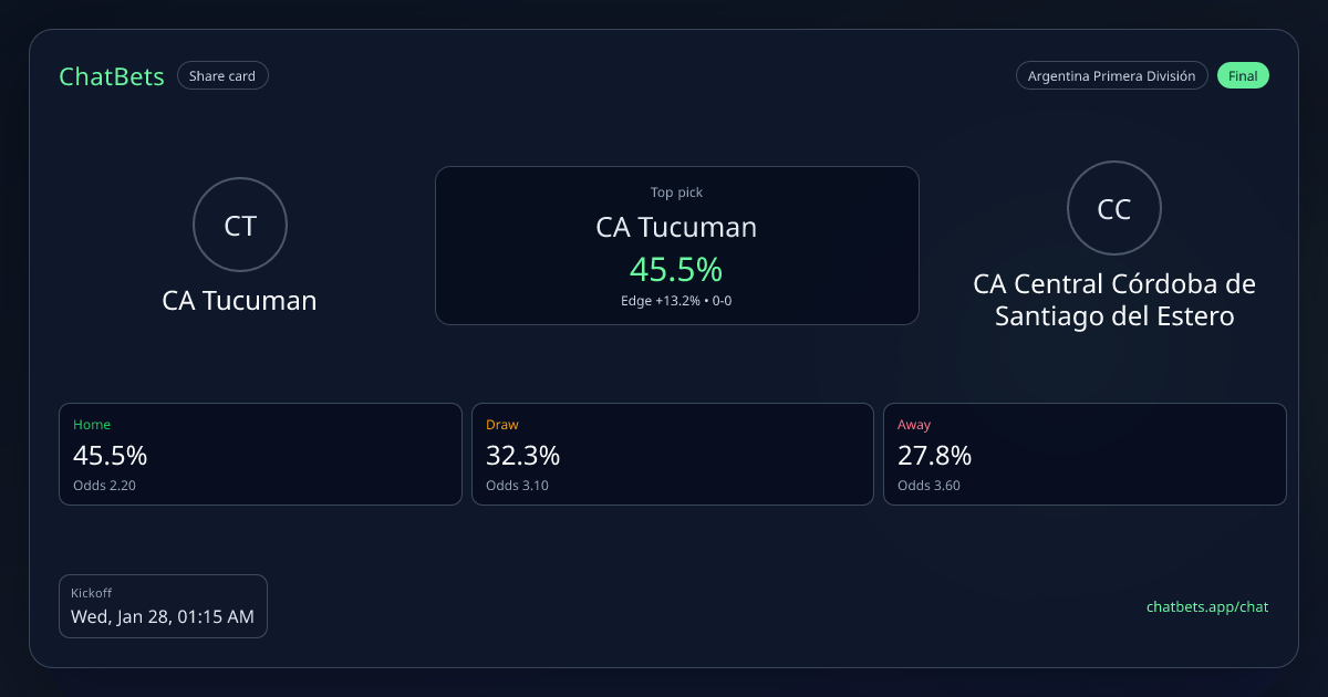 CA Tucuman vs CA Central Córdoba de Santiago del Estero prediction card