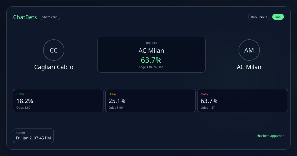 Cagliari Calcio vs AC Milan prediction card