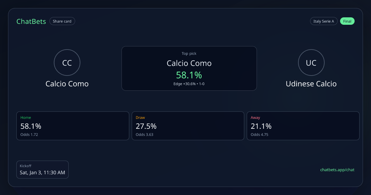 Calcio Como vs Udinese Calcio prediction card
