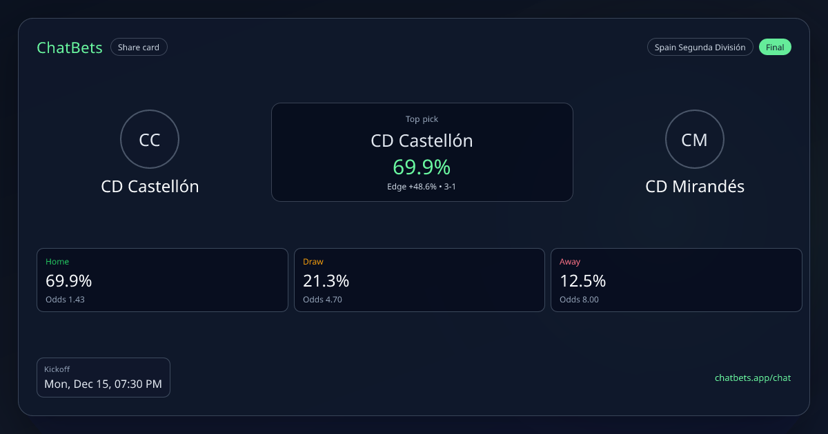 CD Castellón vs CD Mirandés prediction card