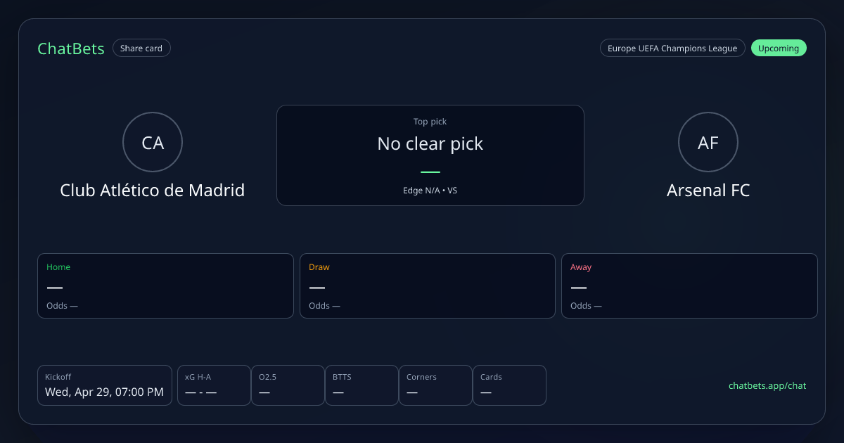 Club Atlético de Madrid vs Arsenal FC prediction card