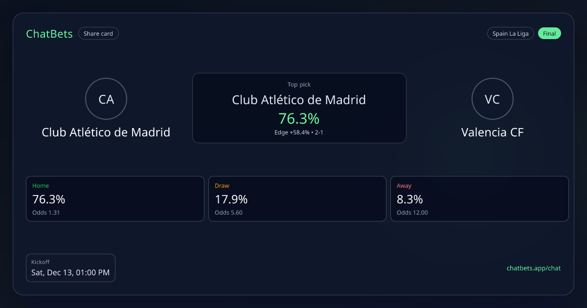 Club Atlético de Madrid vs Valencia CF prediction card