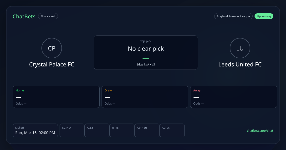 Crystal Palace FC vs Leeds United FC prediction card