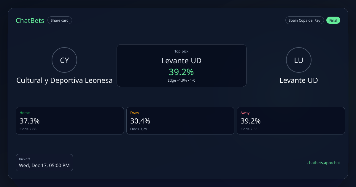 Cultural y Deportiva Leonesa vs Levante UD prediction card