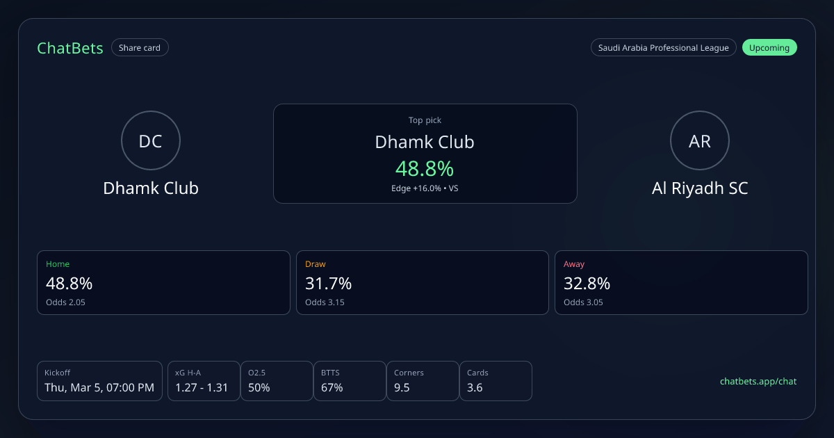 Dhamk Club vs Al Riyadh SC prediction card