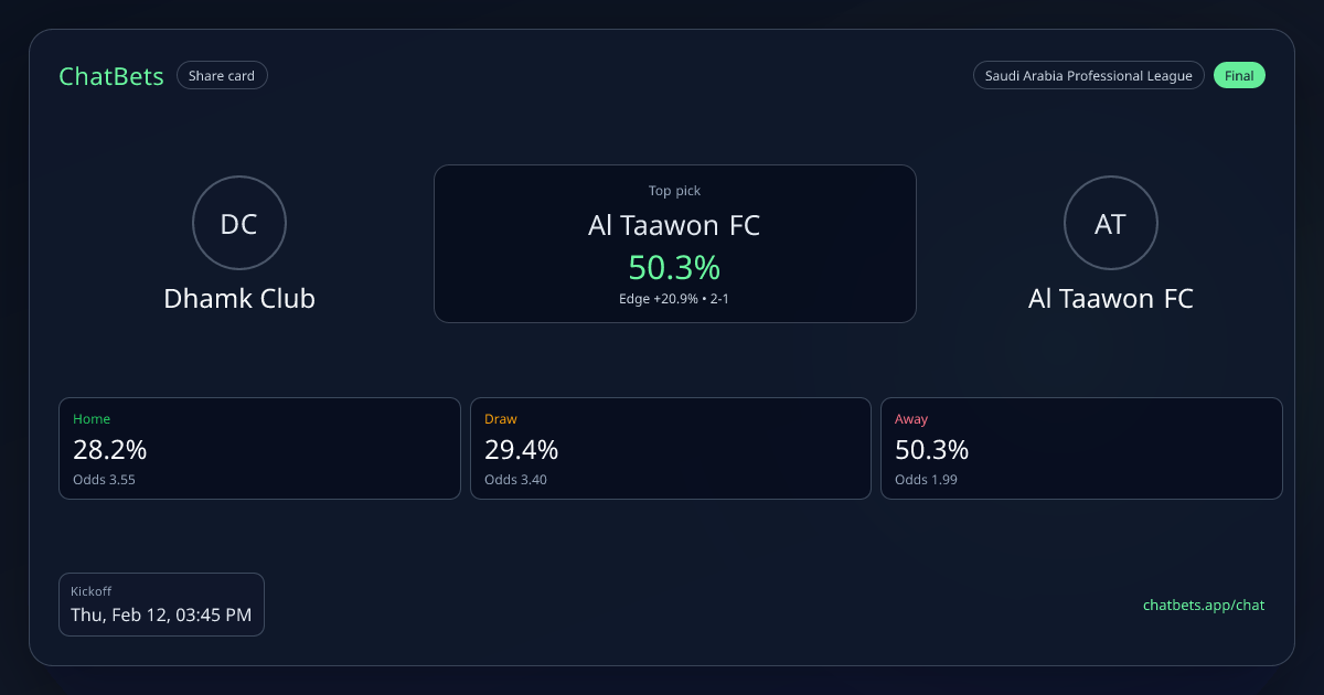 Dhamk Club vs Al Taawon FC prediction card