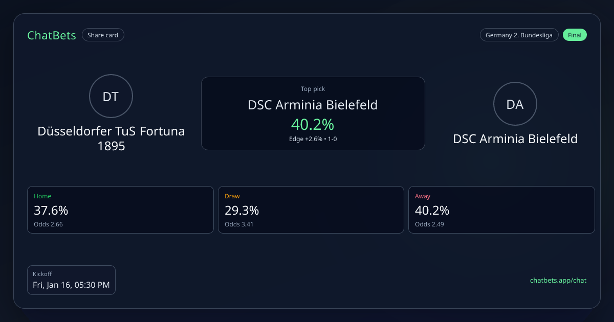Düsseldorfer TuS Fortuna 1895 vs DSC Arminia Bielefeld prediction card