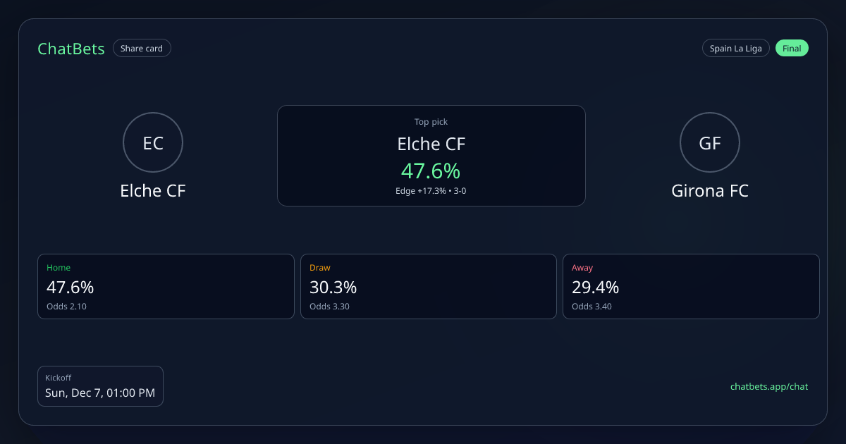 Elche CF vs Girona FC prediction card