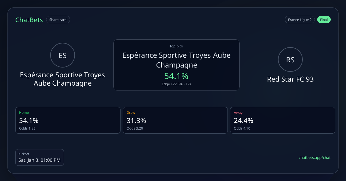 Espérance Sportive Troyes Aube Champagne vs Red Star FC 93 prediction card