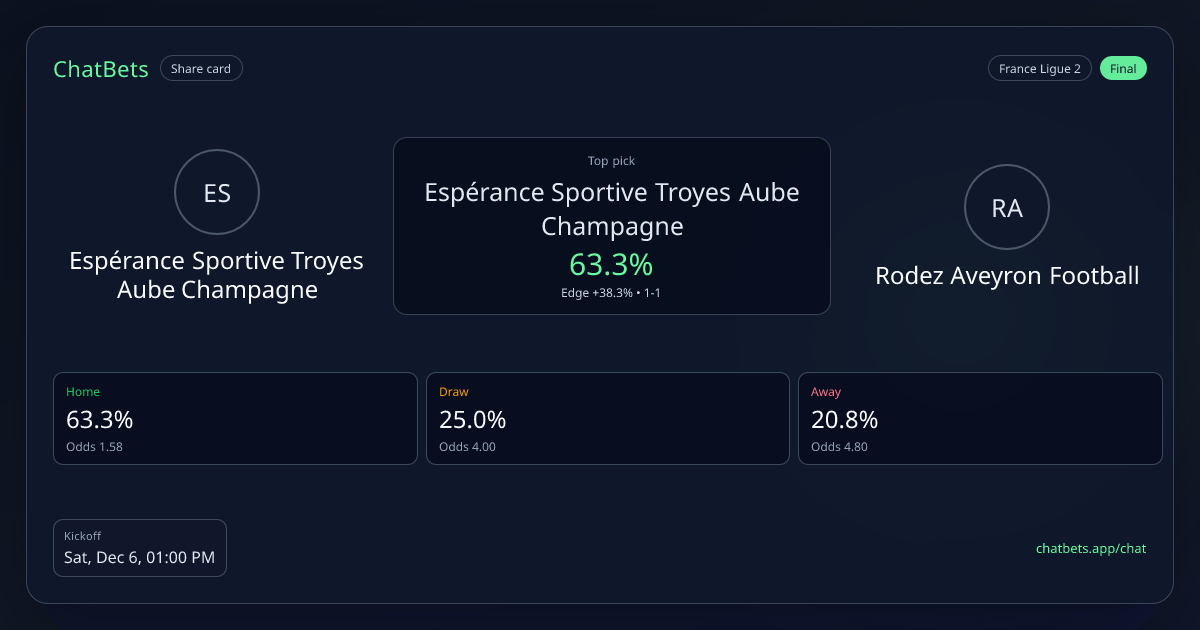 Espérance Sportive Troyes Aube Champagne vs Rodez Aveyron Football prediction card