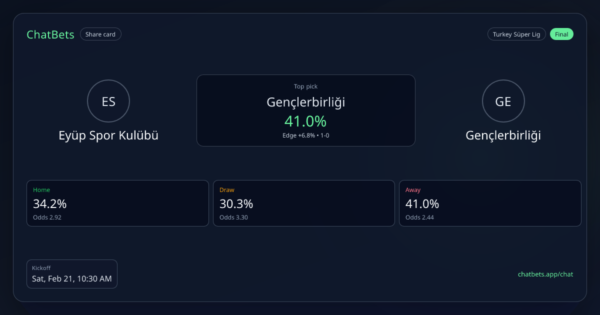 Eyüp Spor Kulübü vs Gençlerbirliği prediction card