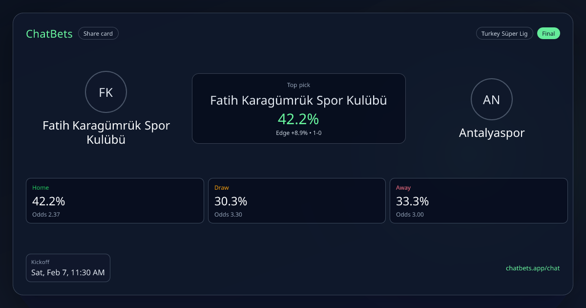 Fatih Karagümrük Spor Kulübü vs Antalyaspor prediction card
