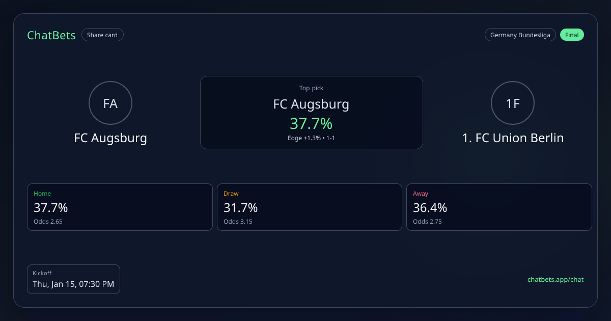 FC Augsburg vs 1. FC Union Berlin prediction card