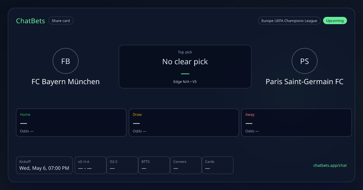 FC Bayern München vs Paris Saint-Germain FC prediction card