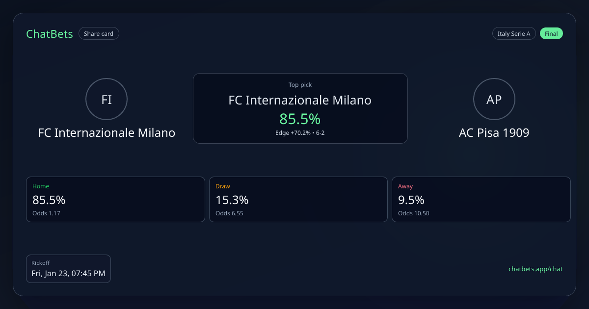 FC Internazionale Milano vs AC Pisa 1909 prediction card