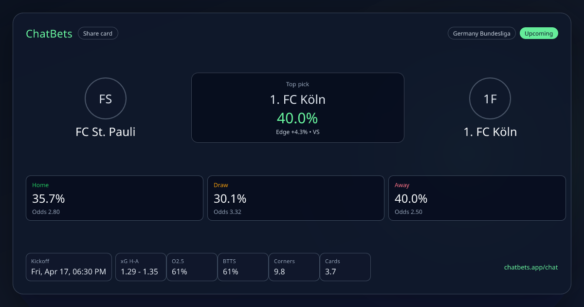 FC St. Pauli vs 1. FC Köln prediction card