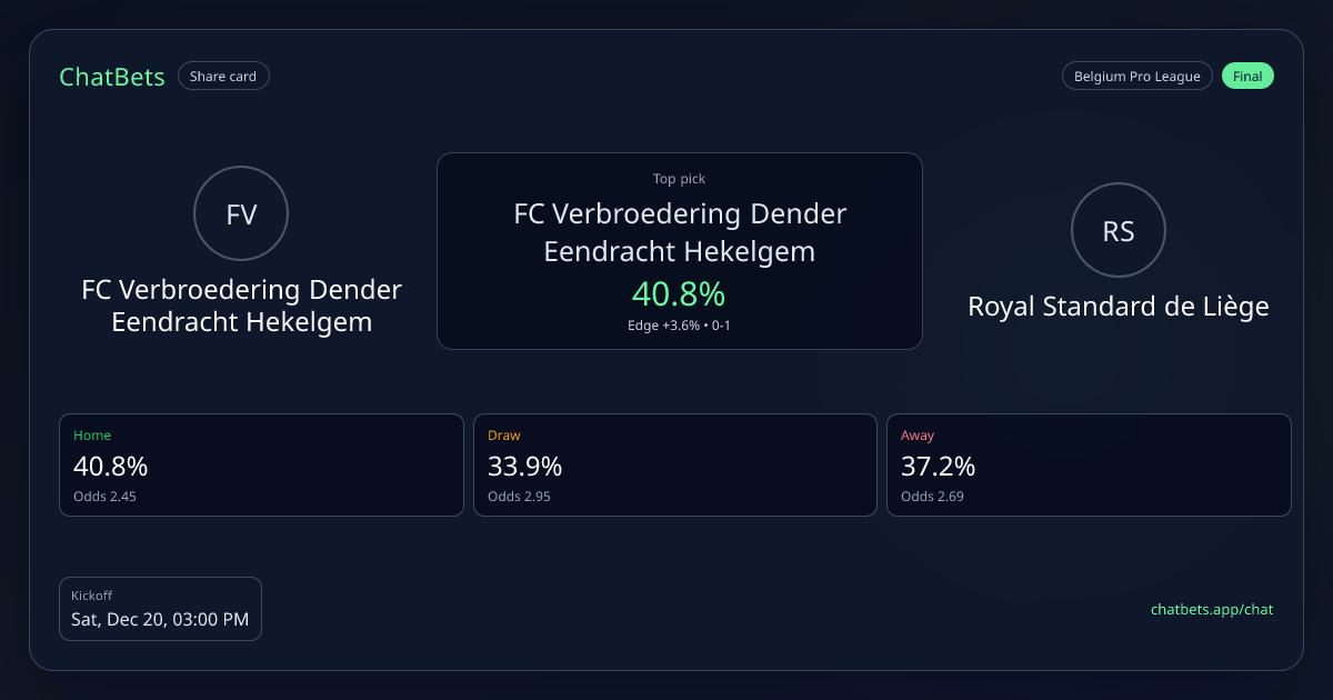 FC Verbroedering Dender Eendracht Hekelgem vs Royal Standard de Liège prediction card