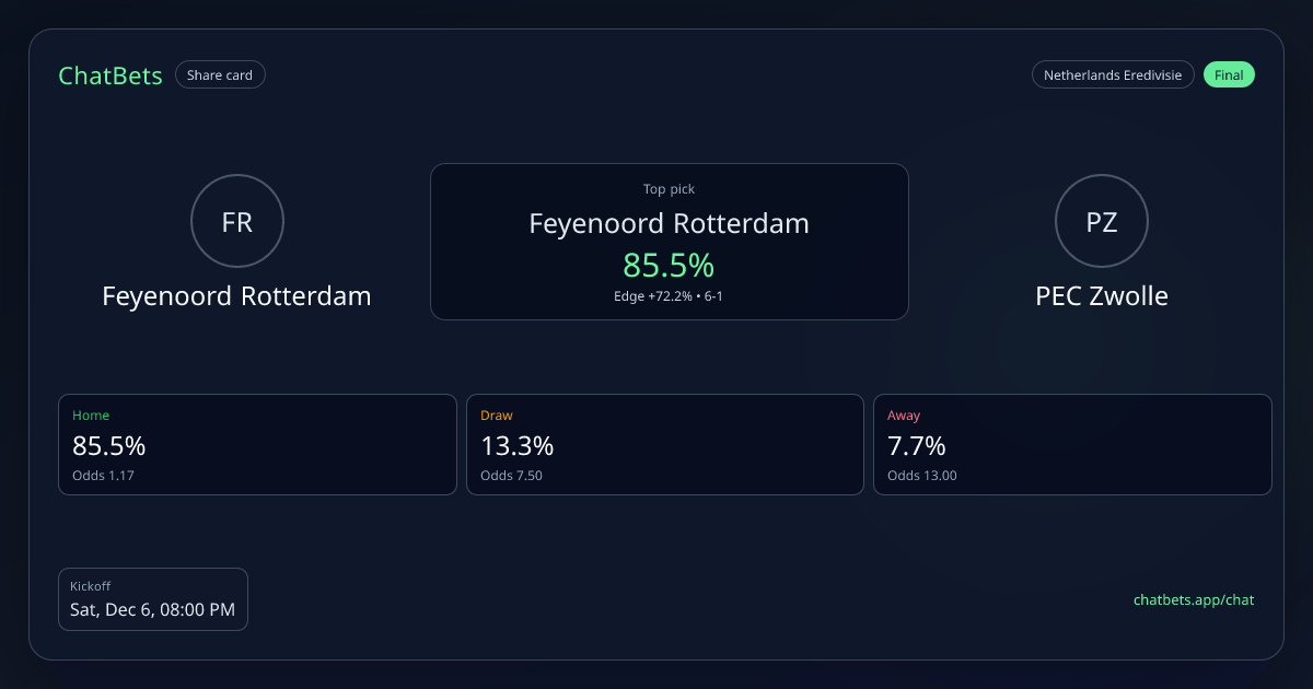 Feyenoord Rotterdam vs PEC Zwolle prediction card