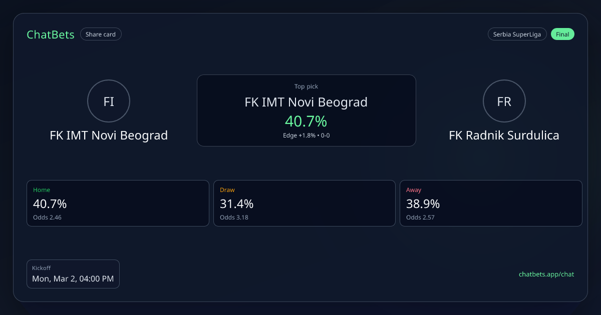 FK IMT Novi Beograd vs FK Radnik Surdulica prediction card
