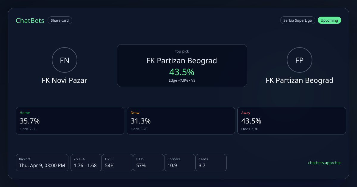 FK Novi Pazar vs FK Partizan Beograd prediction card