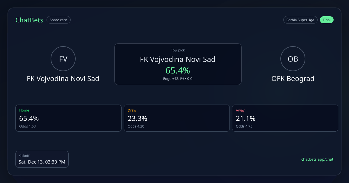 FK Vojvodina Novi Sad vs OFK Beograd prediction card