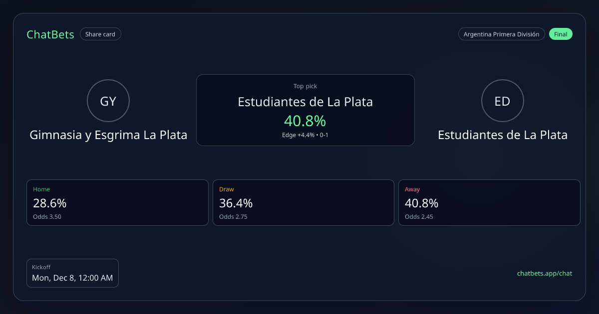 Gimnasia y Esgrima La Plata vs Estudiantes de La Plata prediction card