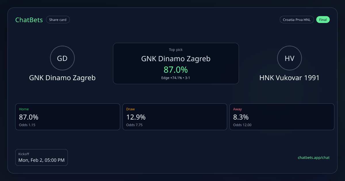 GNK Dinamo Zagreb vs HNK Vukovar 1991 prediction card