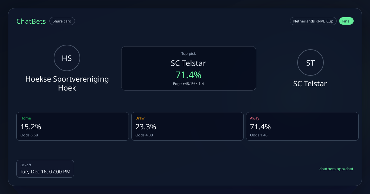 Hoekse Sportvereniging Hoek vs SC Telstar prediction card