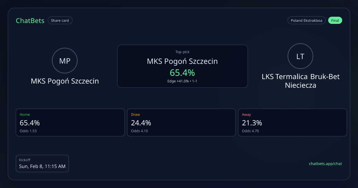 MKS Pogoń Szczecin vs LKS Termalica Bruk-Bet Nieciecza prediction card