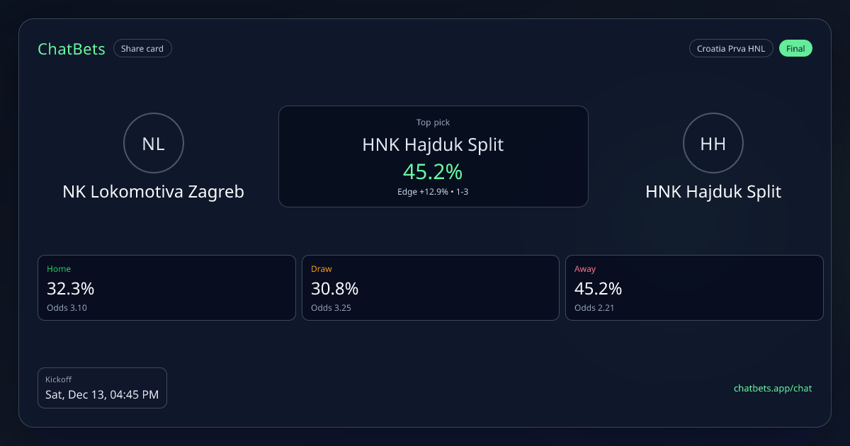 NK Lokomotiva Zagreb vs HNK Hajduk Split prediction card