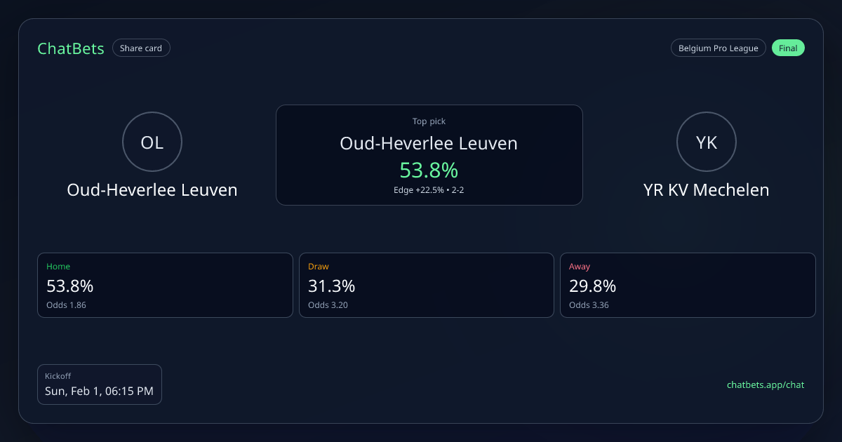 Oud-Heverlee Leuven vs YR KV Mechelen Prediction Card | ChatBets