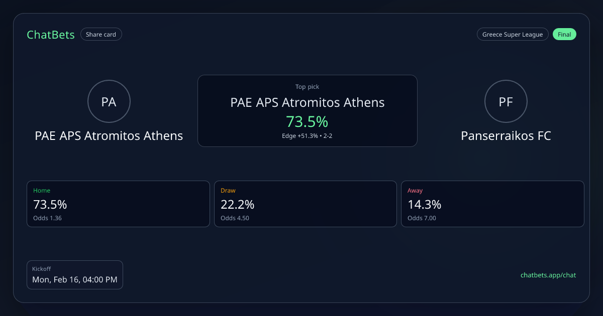 PAE APS Atromitos Athens vs Panserraikos FC prediction card