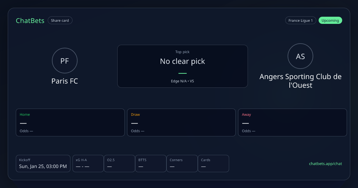 Paris FC vs Angers Sporting Club de l'Ouest prediction card