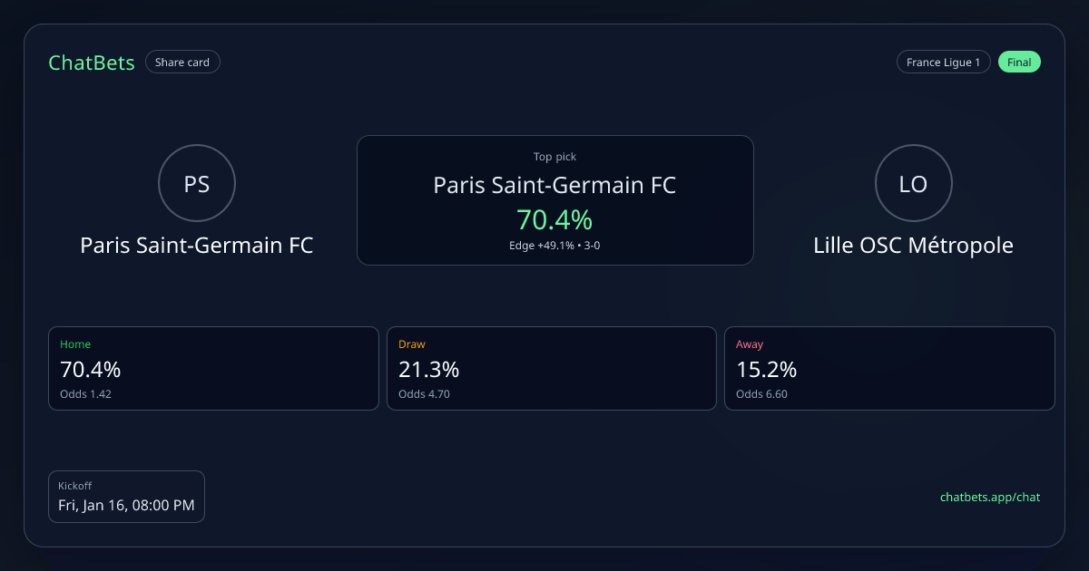 Paris Saint-Germain FC vs Lille OSC Métropole prediction card