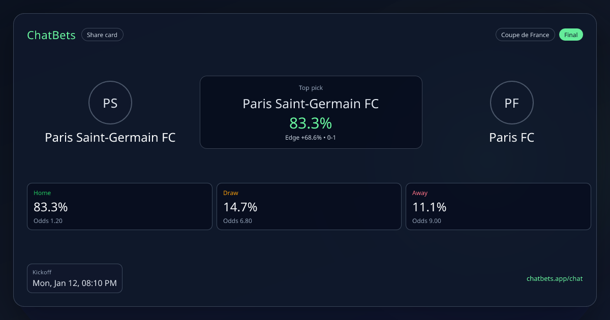 Paris Saint-Germain FC vs Paris FC prediction card
